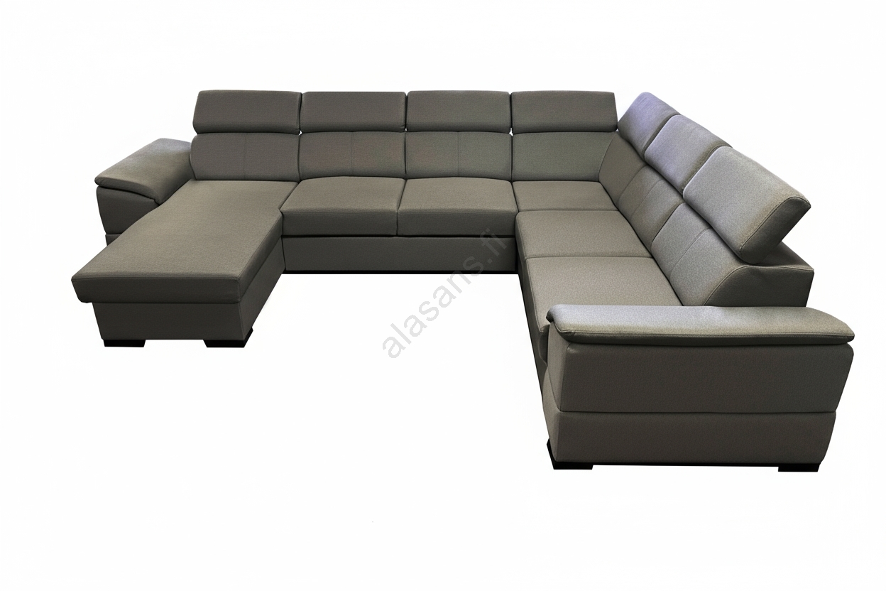 • GRANADA avattava U-muotoinen kulmasohva käännettävällä kulmalla ja säilytystilalla, vaaleanharmaa