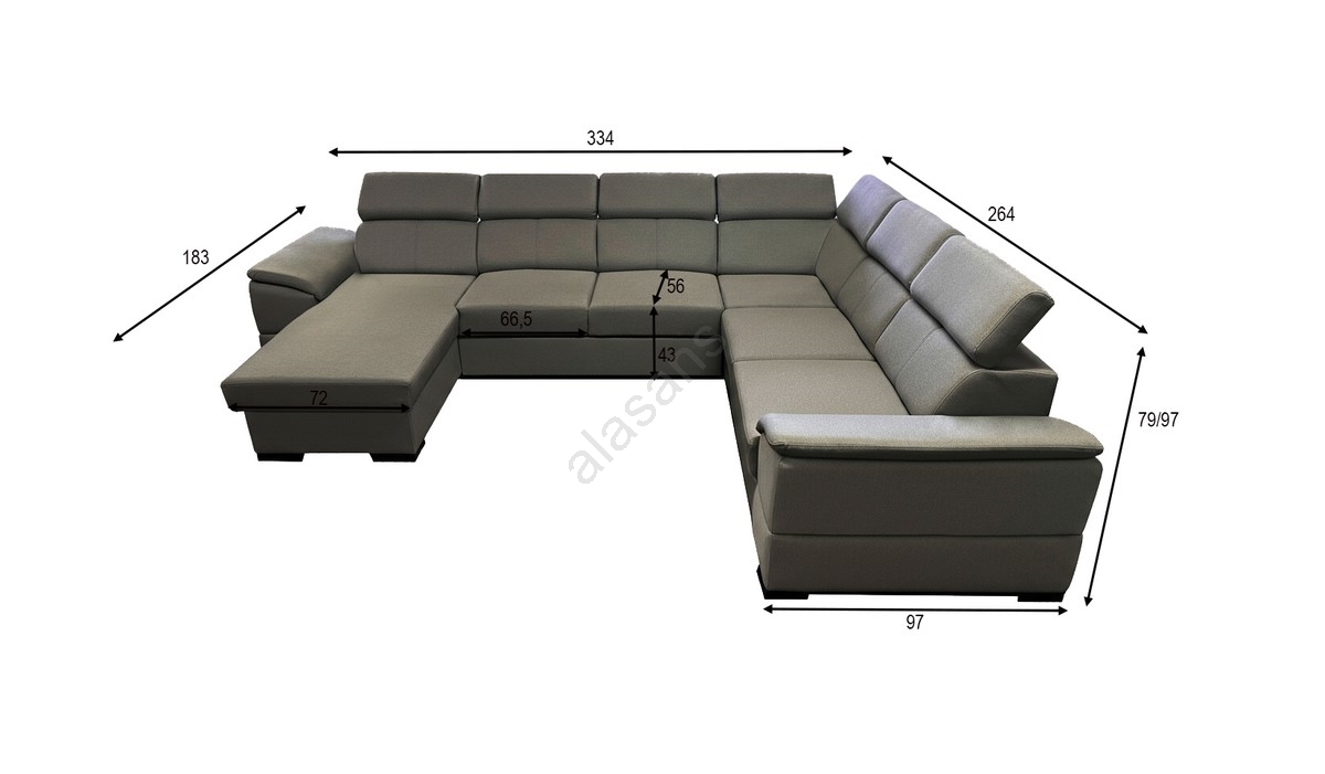 • Tilava U-muotoinen kulmasohva tarjoaa sekä mukavuutta että tyylikästä muotoilua.