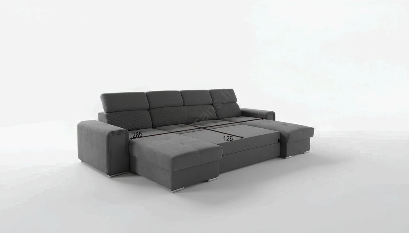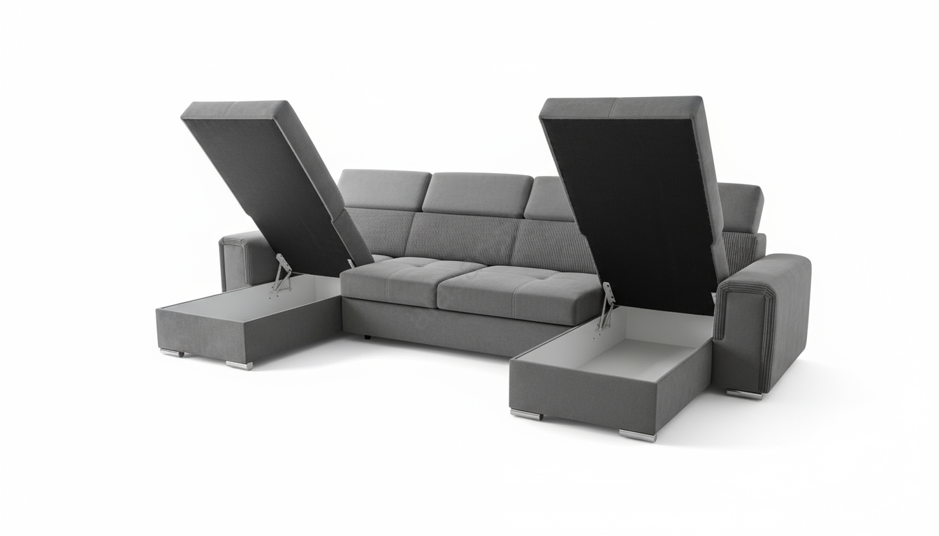 • Avattava U-muotoinen kulmasohva SALVADA, käännettävällä kulmalla ja säilytystilalla, tummanharmaa