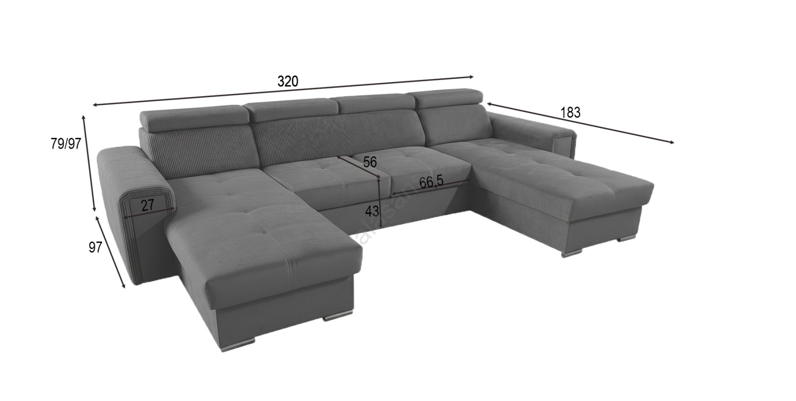 • Tilava U-muotoinen kulmasohva yhdistää mukavuuden ja tyylikkään muotoilun.