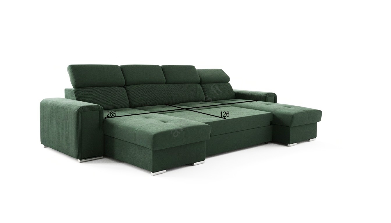 • U-sohva, jossa on säilytystila ja universaali kulma, SALVADA vihreä