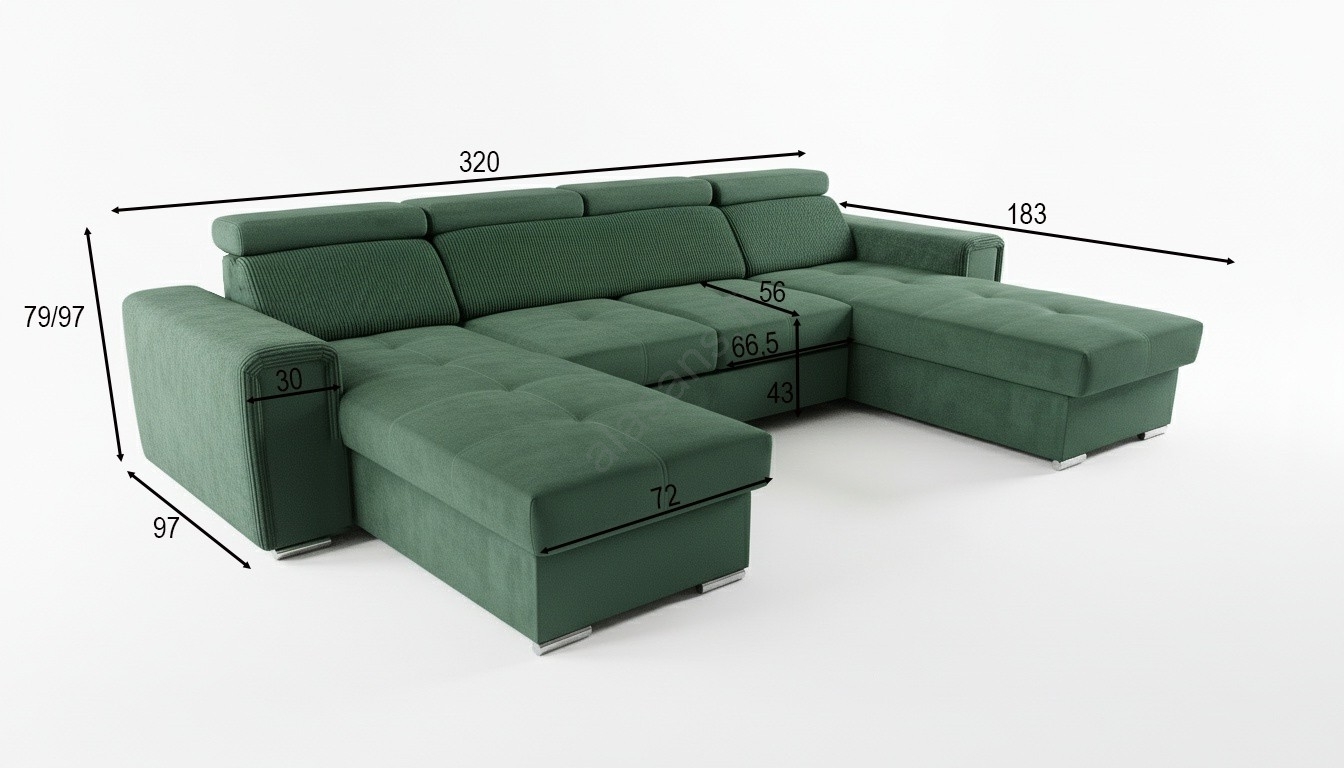 Rozkl. U-sohva SALVADA vihreä, säilytystilalla, universaali kulma | Alasans
