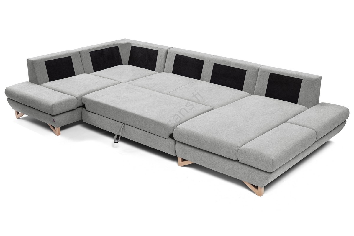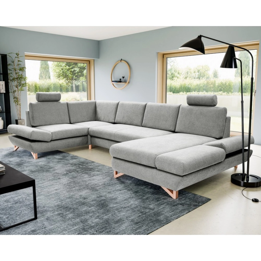 • U-muotoinen vuoteeksi avattava verhoiltu kulmasohva AVESTA, säilytystilalla, harmaa