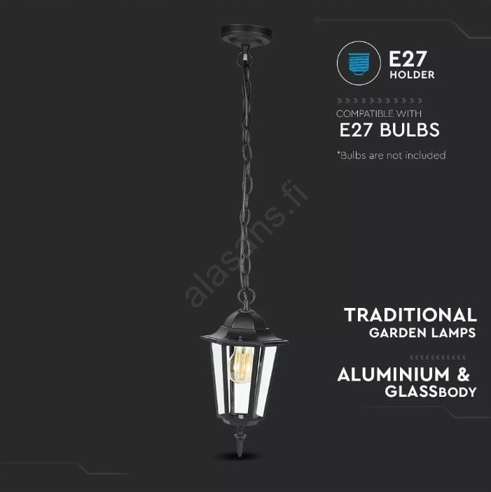 Ulkokattokruunu ketjulla 1xE27/40W/230V IP44 musta | Alasans