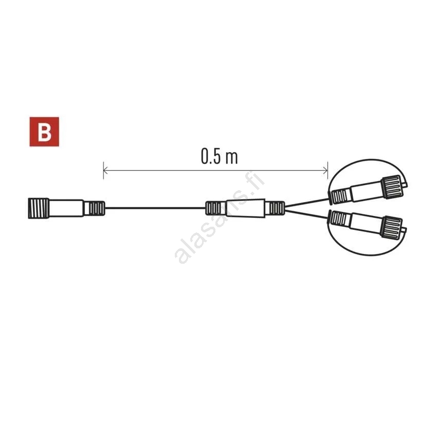 Ulkokäyttöön tarkoitettu haaroituskaapeli liitäntäketjuille 0,5 m IP44 | Alasans