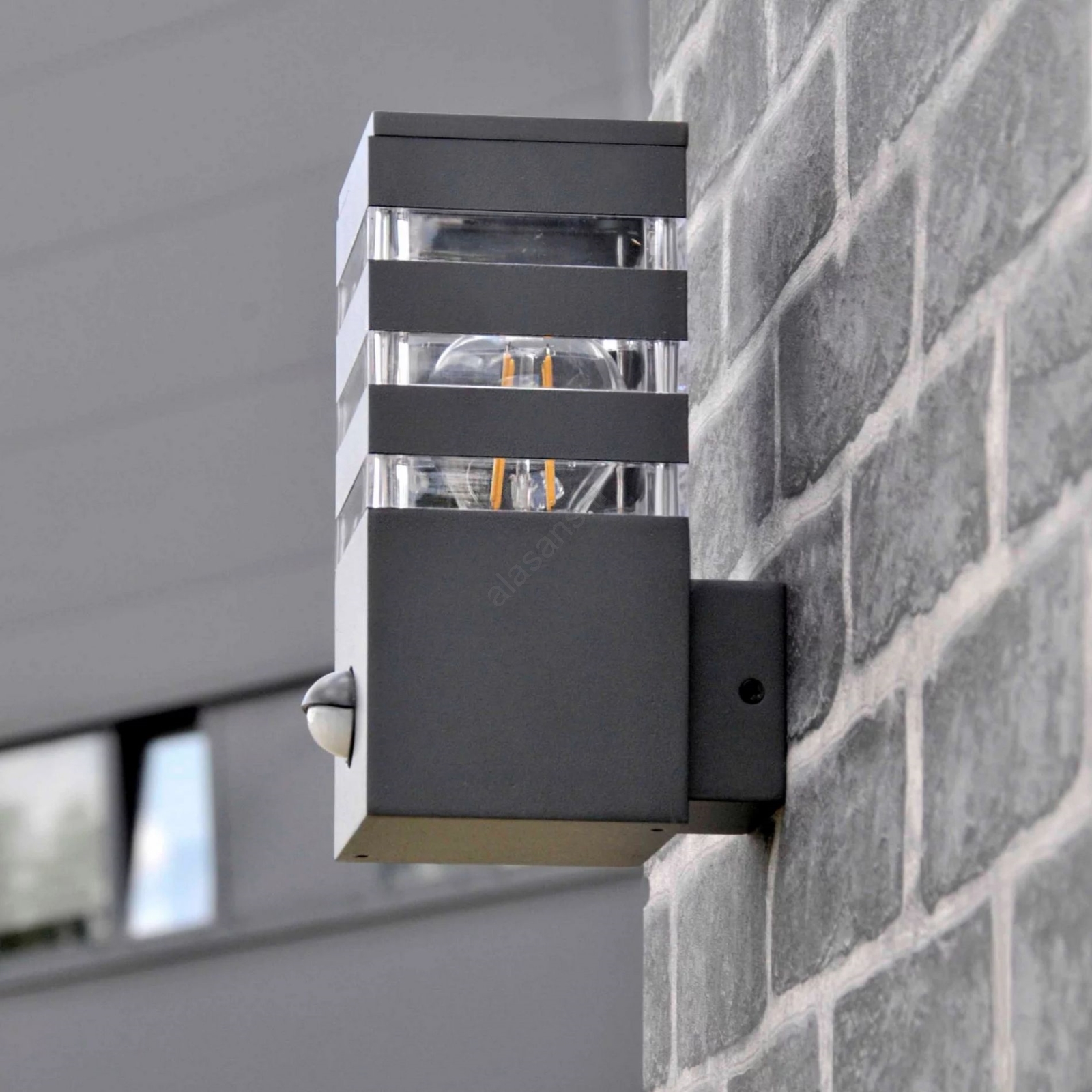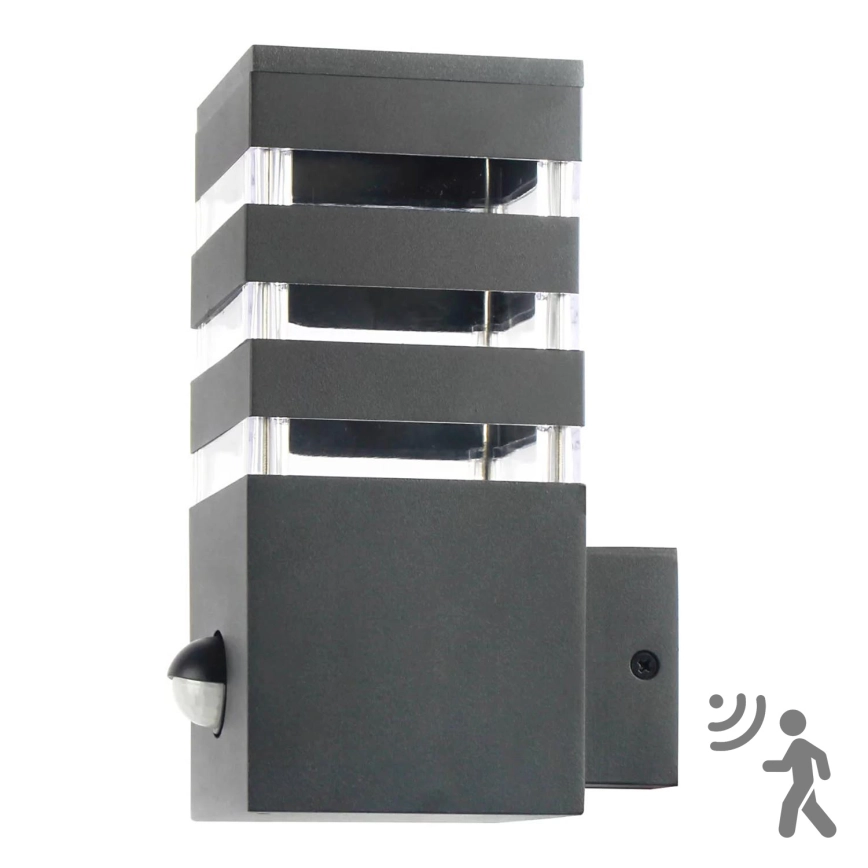 Ulkoseinävalaisin TEKSAS 1xE27/12W/230V IP44 antrasiitti, sensori | Alasans