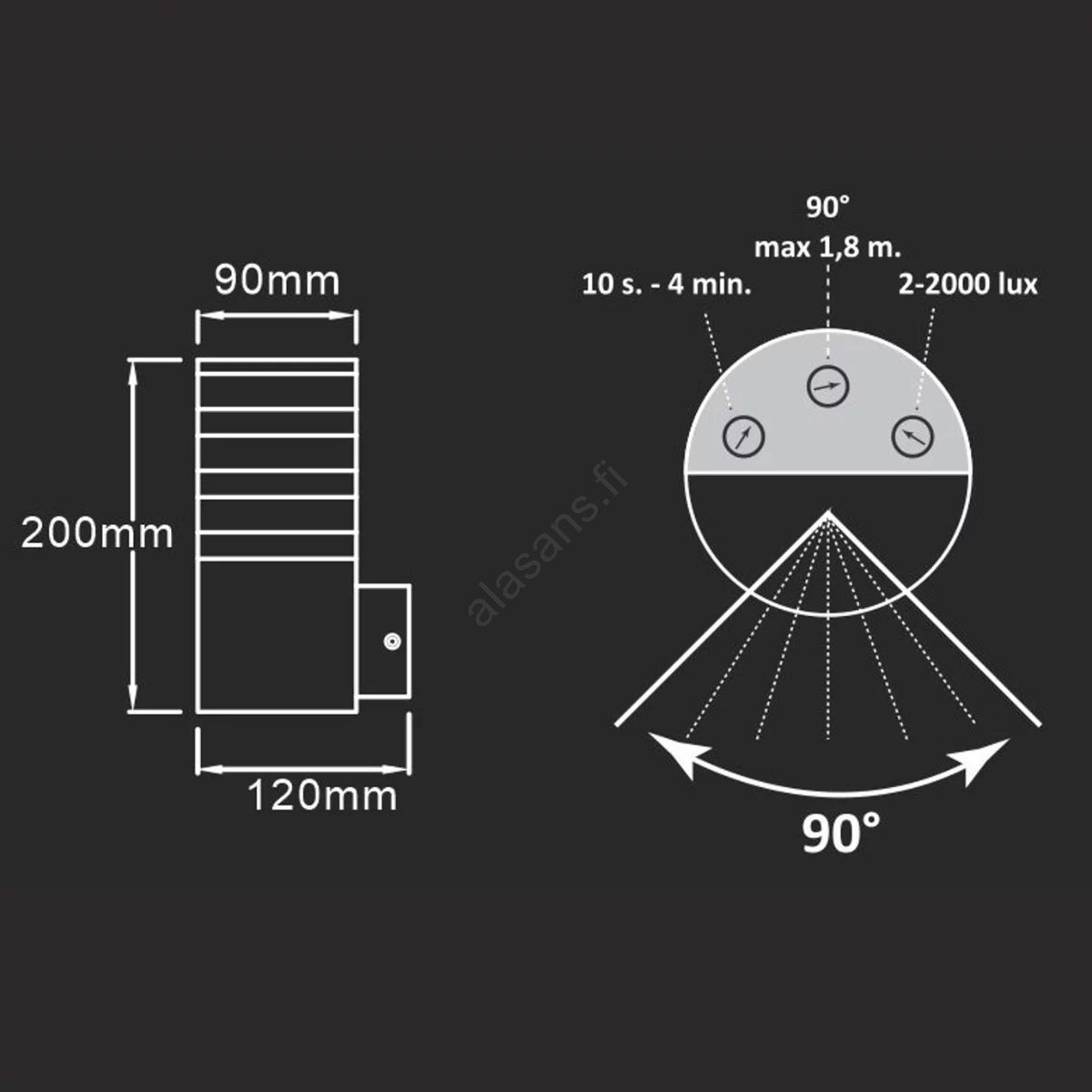 • Hämäräkytkimen säätö: 2 - 2000 lx.