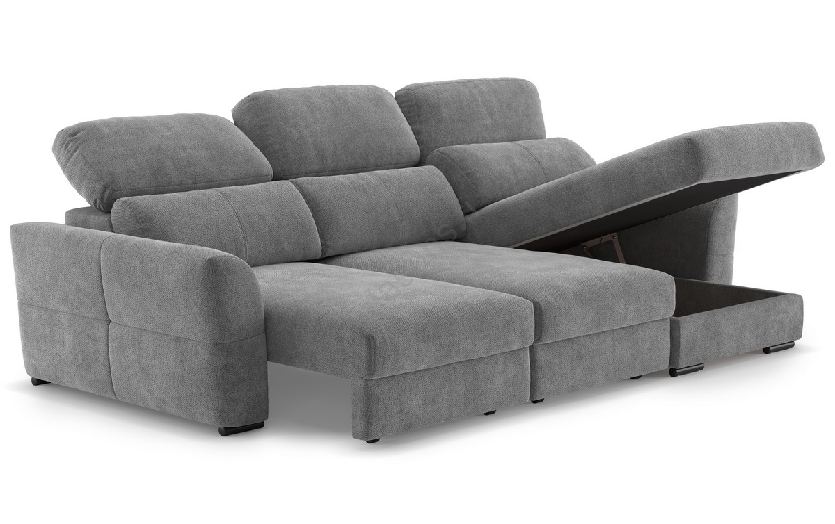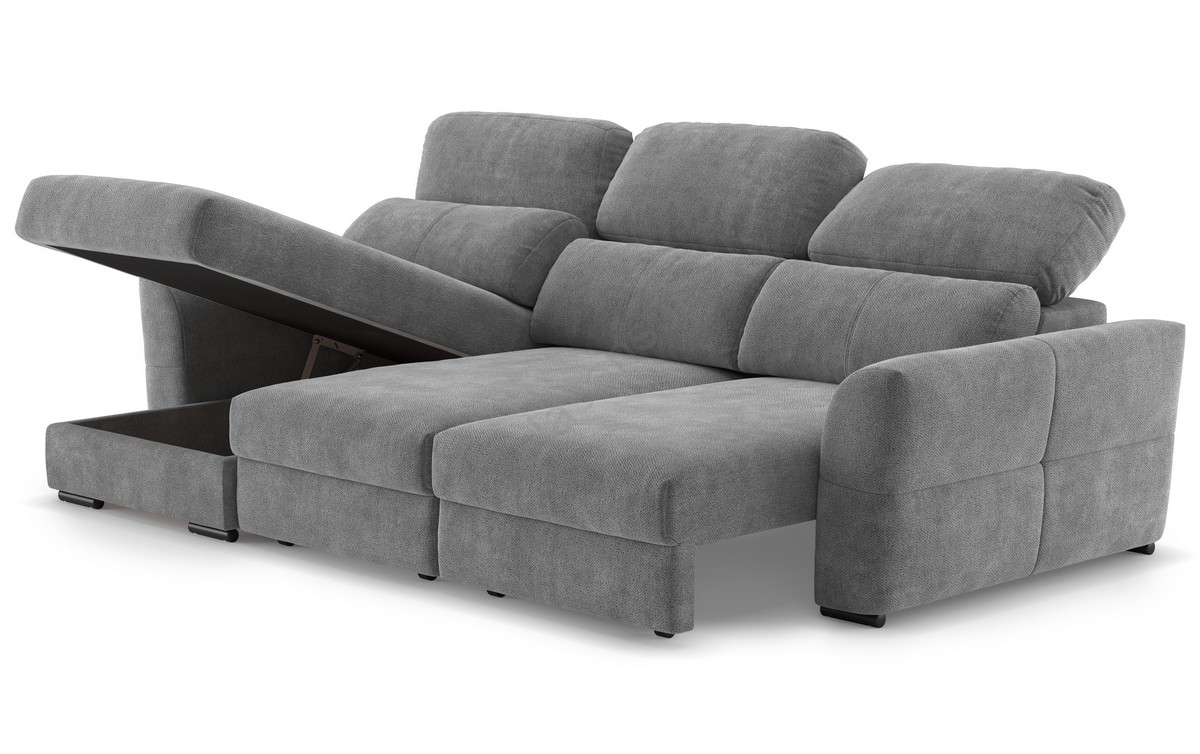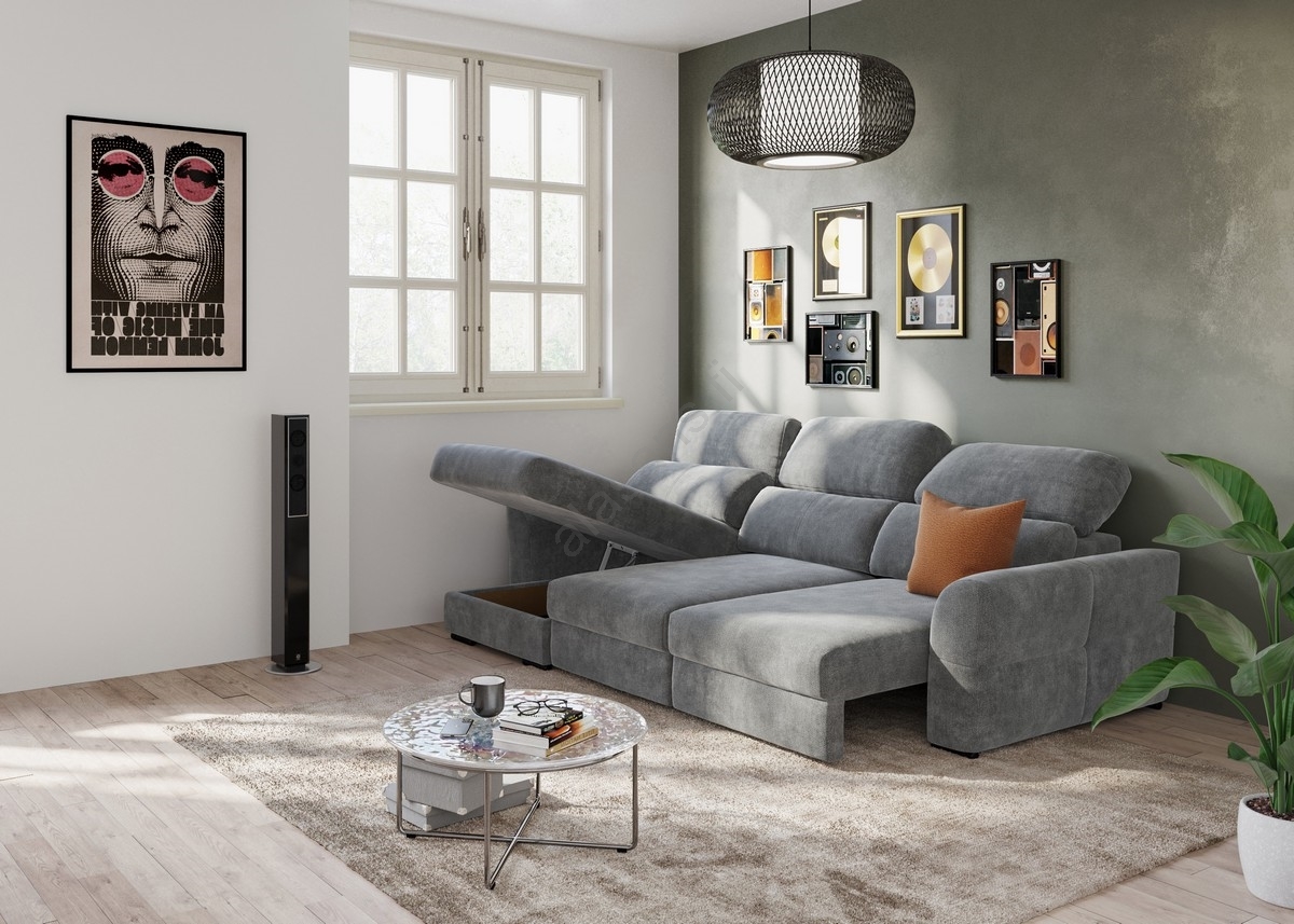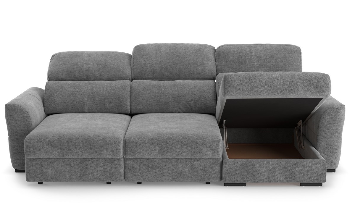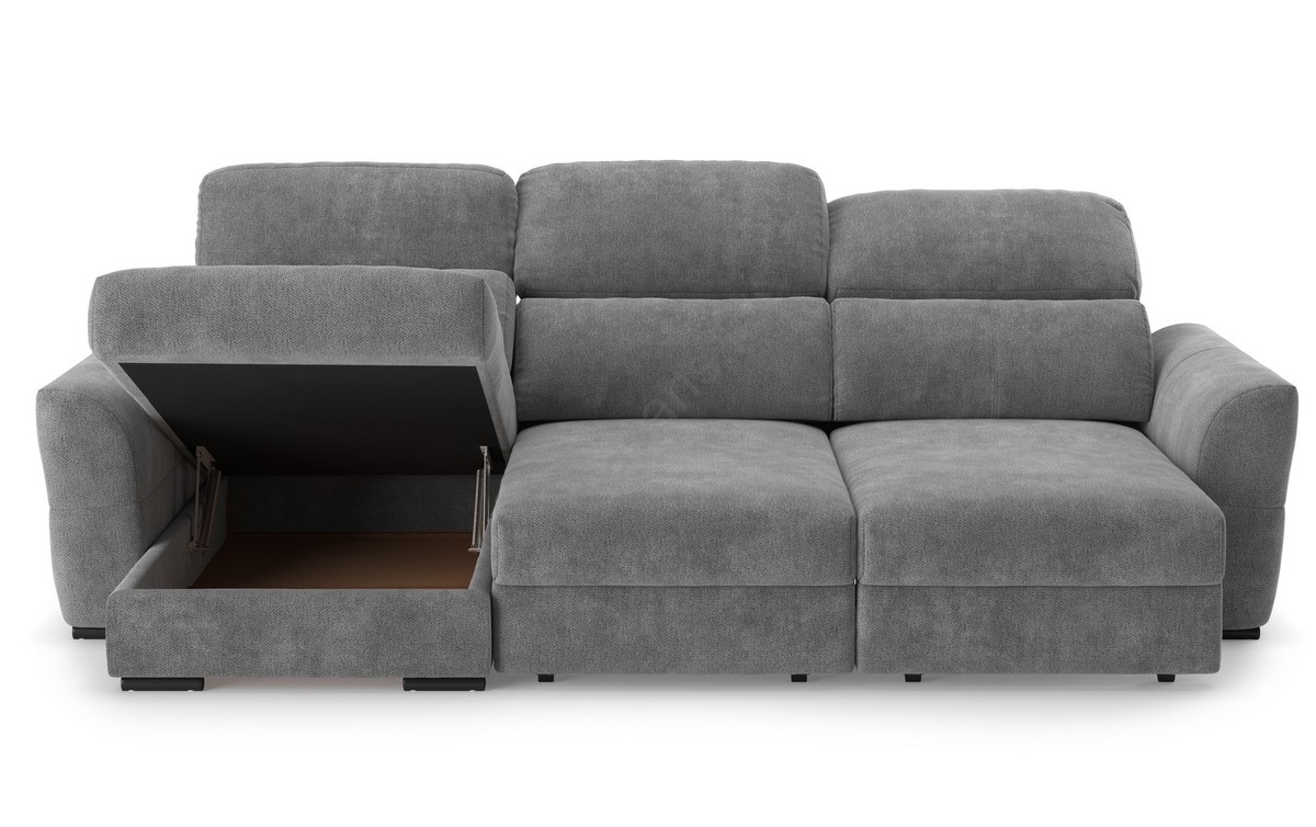 • Monikäyttöinen TRENTO-kulmasohva, avattava, kolmipaikkainen, säilytystilalla — harmaa