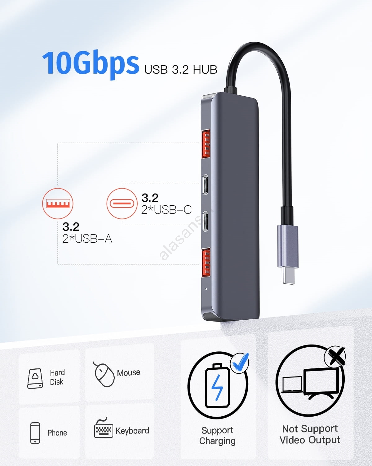 USB-C-hubi 5-in-1 Power Delivery 100 W | Alasans