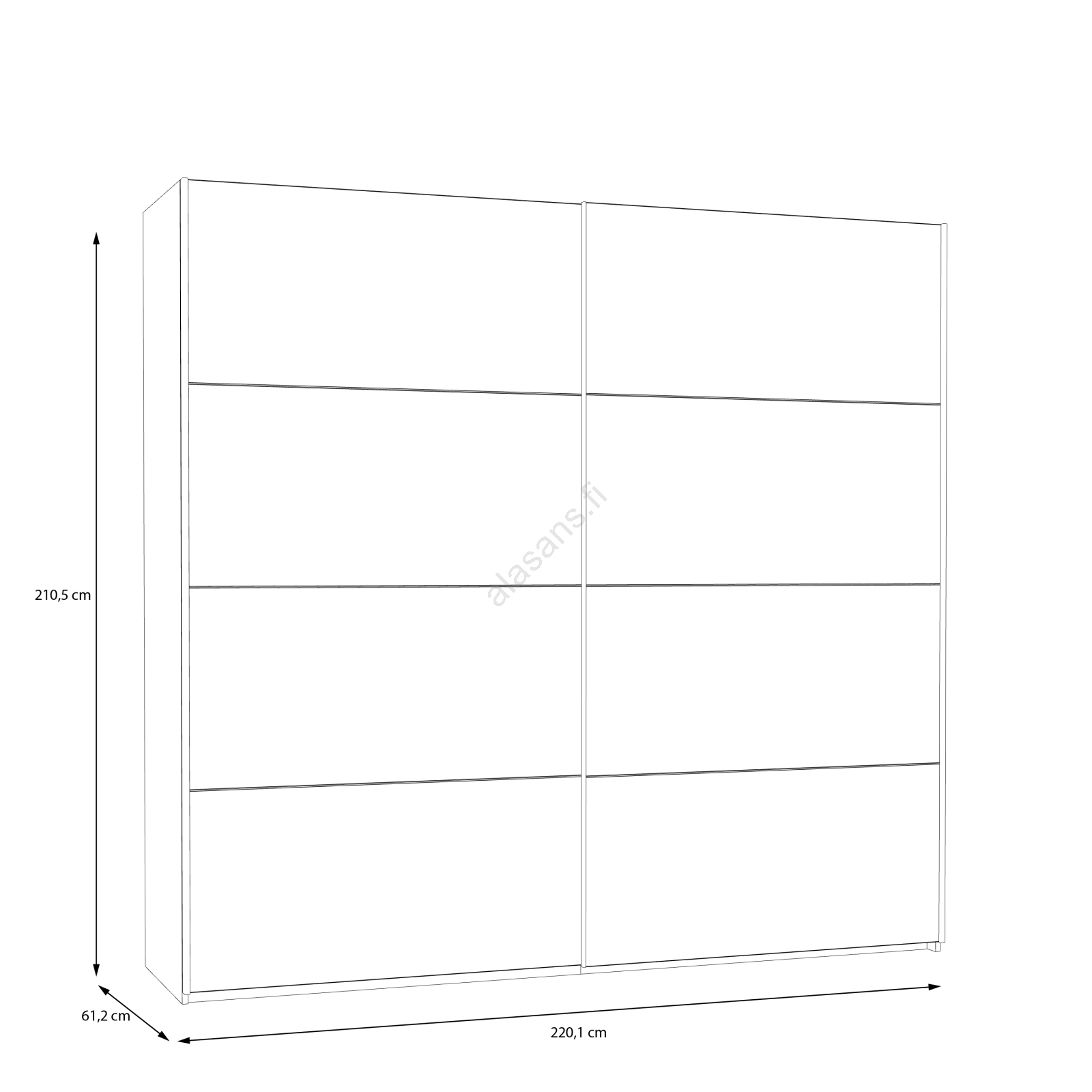 Peilillinen vaatekaappi KARO 220x210 cm valkoinen | Alasans