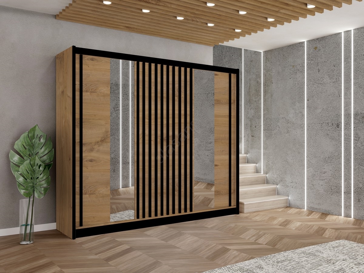 Peilillinen vaatekaappi SANTINO 250x215 cm craft-tammi/musta | Alasans