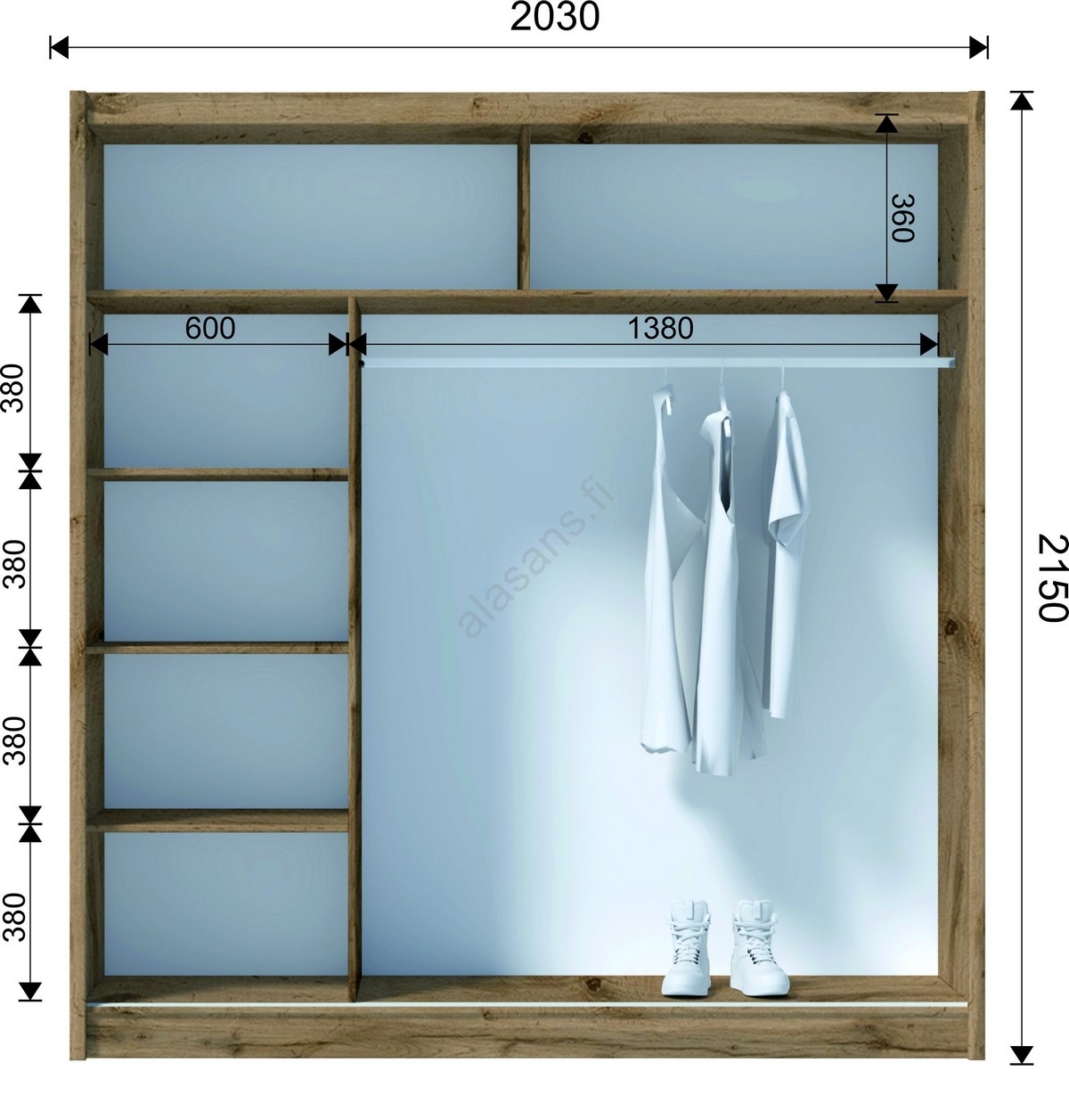 Vaatekaappi peilillä SABRINA 203x215 cm woltan tammi | Alasans