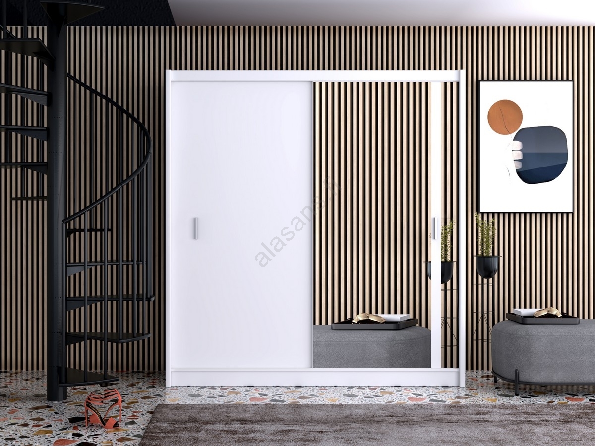Vaatekaappi peilillä SABRINA 203x215 cm valkoinen | Alasans
