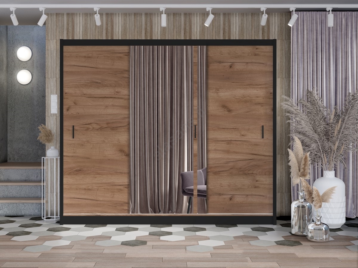 • Vaatekaappi peilillä MIRO 250x215 cm tammi craft/musta