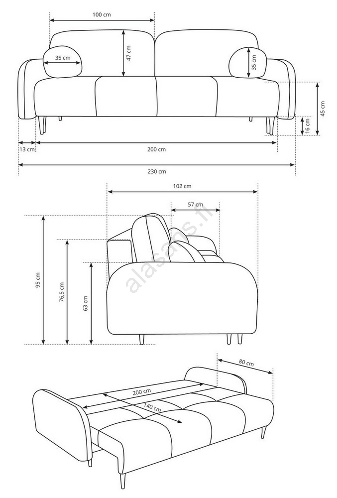 • Kiitos nukkumistoiminnon (tyyppi DL) sohvan voi helposti muuntaa mukavaksi makuutilaksi.