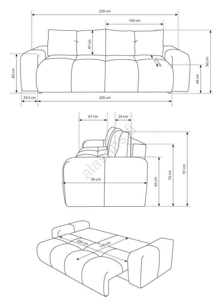 • Moderni avattava verhoiltu sohva ALMADA on ihanteellinen valinta niille, jotka haluavat yhdistää tyylin, mukavuuden ja käytännöllisyyden.