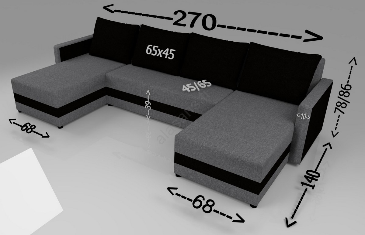 Verhoiltu, muunneltava U-muotoinen vuodesohva BRISTOL, harmaa/musta | Alasans