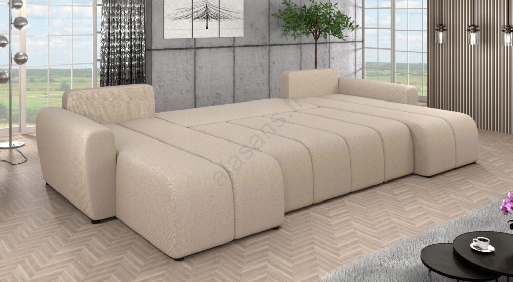 Verhoiltu, monikäyttöinen U-muotoinen vuoteeksi avattava istuinryhmä NEWPORT, beige | Alasans