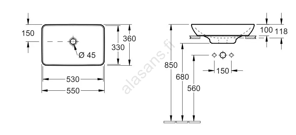 Villeroy & Boch 41135501 - Tasolle asennettava VENTICELLO-pesuallas 55,5x36 cm keramiikka/valkoinen