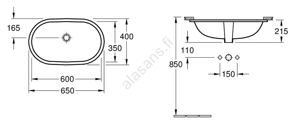Villeroy & Boch 41626001 - Upotettava pesuallas O.NOVO 60x35 cm keraaminen/valkoinen | Alasans