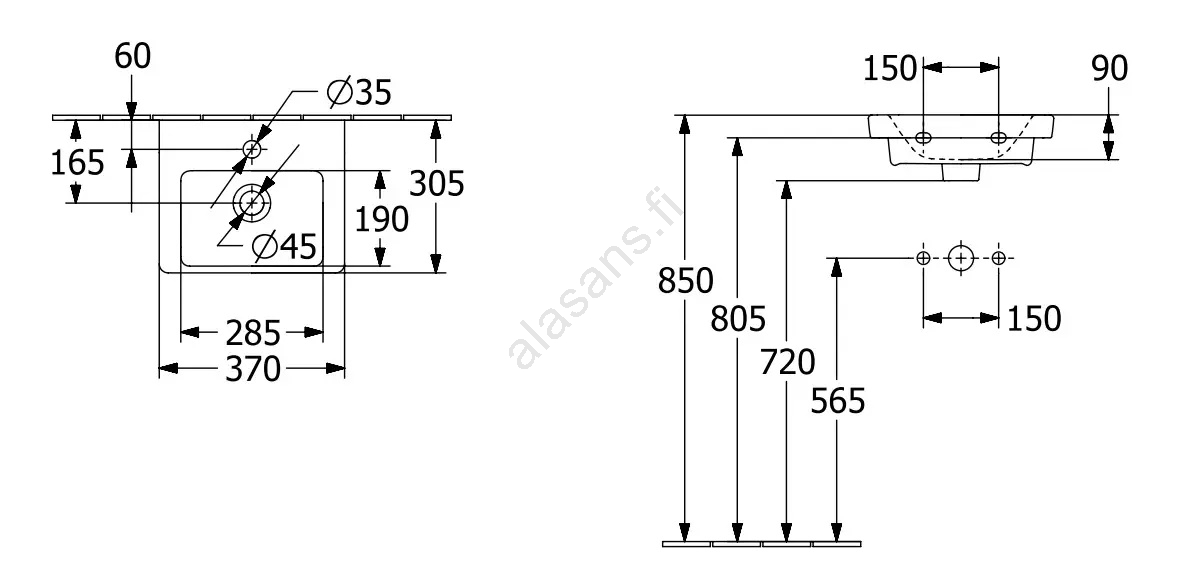 Villeroy & Boch 43703701 - Seinäkiinnitteinen pesuallas SUBWAY 37x30,5 cm keramiikka/valkoinen | Ala