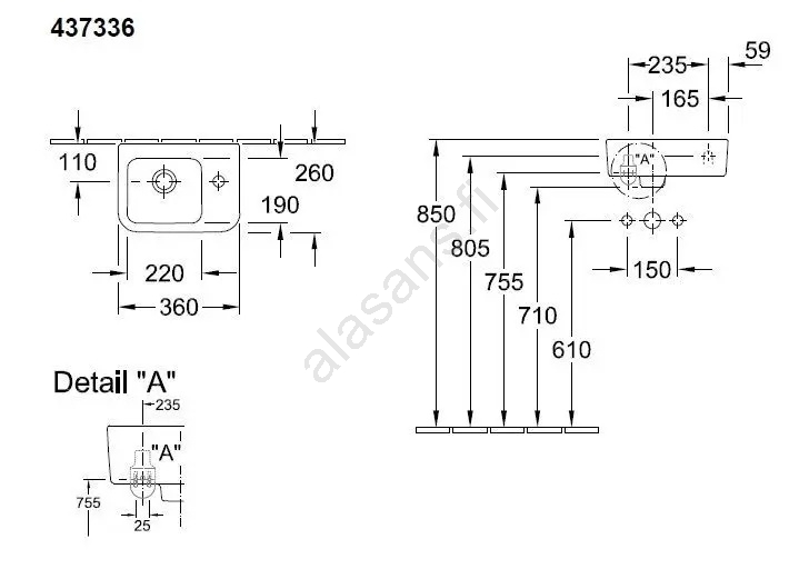 Villeroy & Boch 43733601 - Seinään asennettava pesuallas ARCHITECTURA 36 x 26 cm, keraaminen/valkoin
