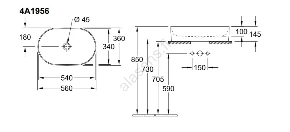 Villeroy & Boch 4A1956R1 - COLLARO, tason päälle asennettava pesuallas 56x36 cm, keramiikka/valkoinen