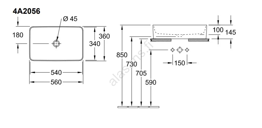 • Moderni ja tyylikäs pesuallas ilman ylivuotoa.
