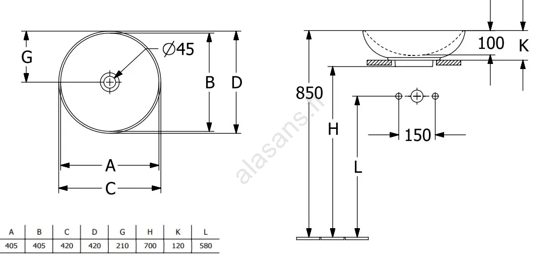 Villeroy & Boch 4A460001 - LOOP&FRIENDS pöytätason pesuallas Ø 42 cm, keramiikka/valkoinen | Alasans