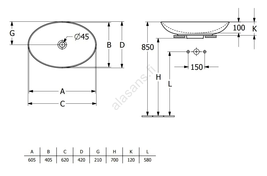 Villeroy & Boch 4A480001 - Pöytätason pesuallas LOOP&FRIENDS 62x42 cm keramiikka/valkoinen | Alasans
