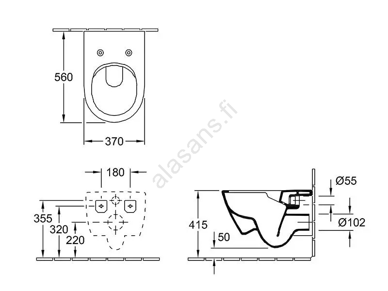 • Seinään kiinnitettävä malli jättää lattian vapaaksi ja helpottaa puhtaanapitoa.