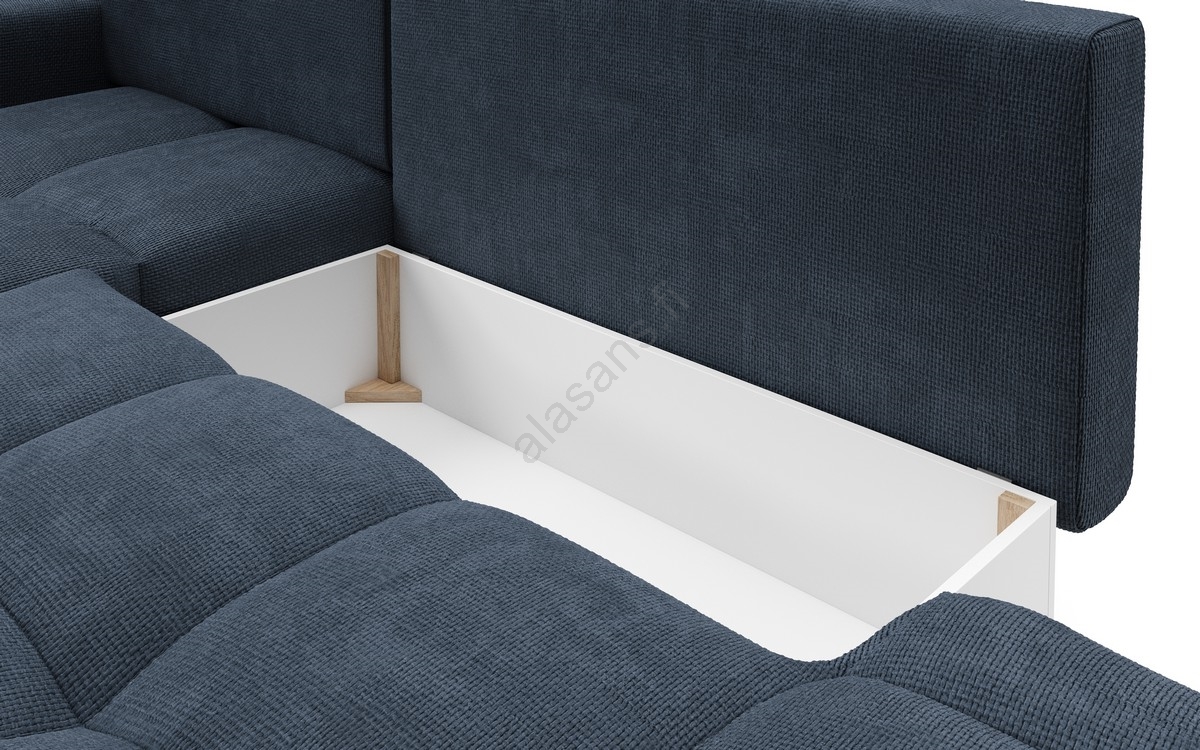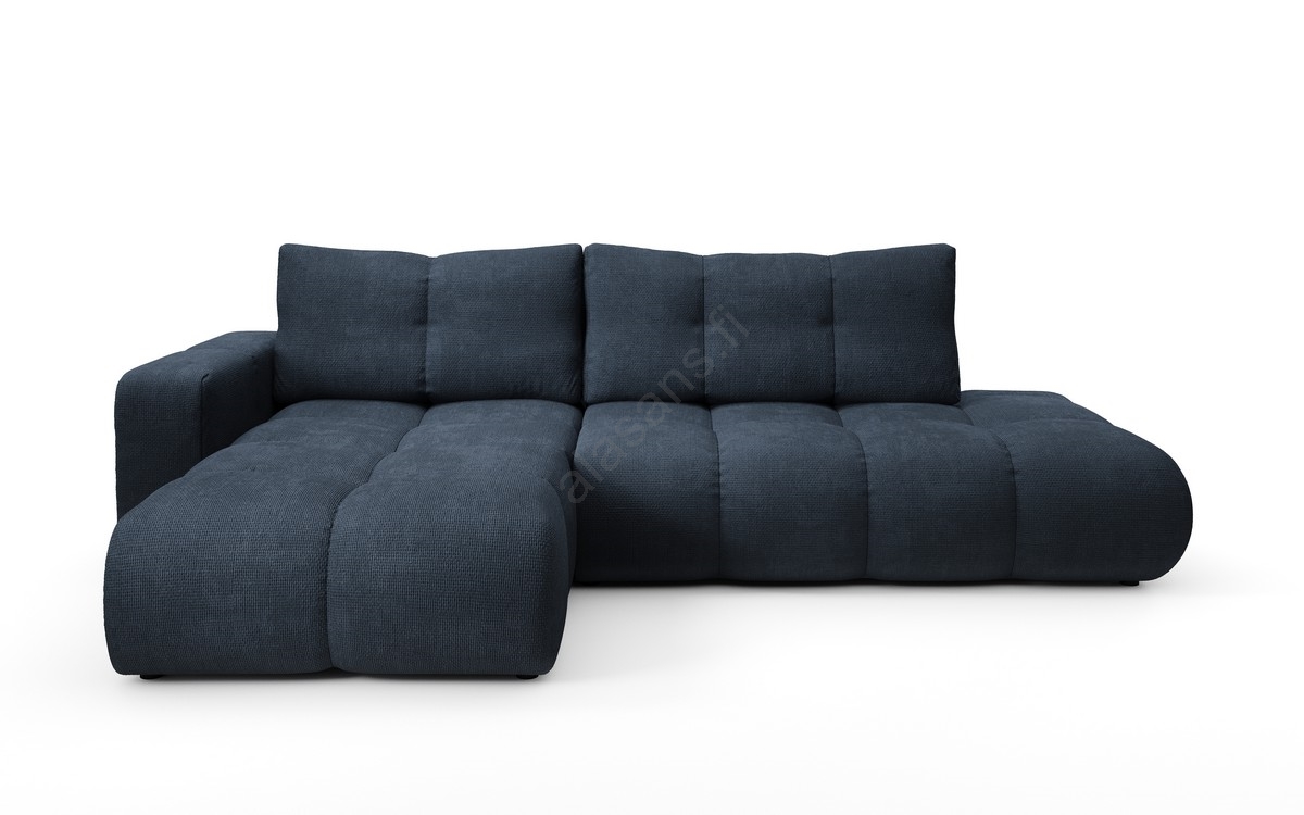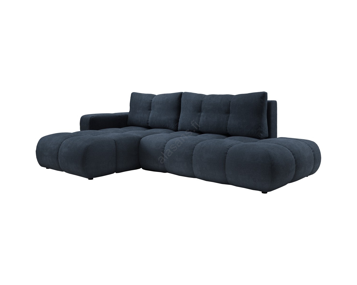 • ALMADA L-muotoinen verhoiltu kulmasohva vuodetoiminnolla ja säilytystilalla, oikeanpuoleinen, sininen
