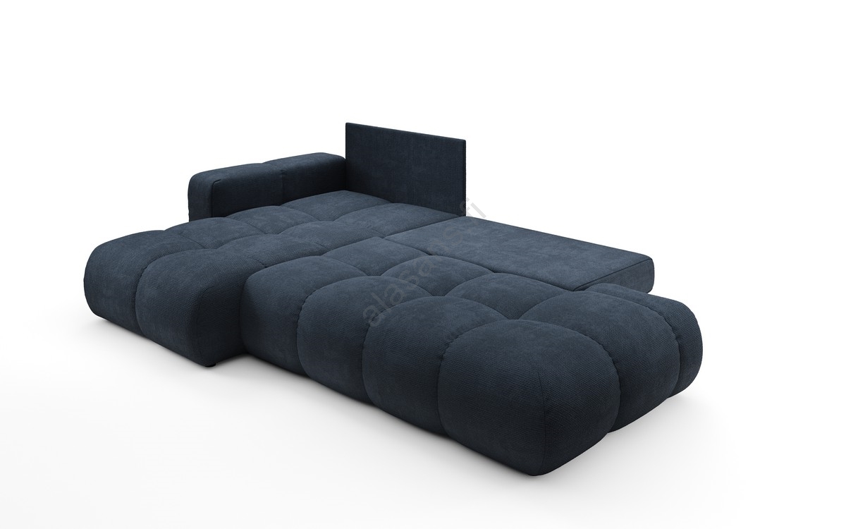 ALMADA L-muotoinen vasenkätinen verhoiltu kulmasohva, vuoteeksi avattava ja säilytystilalla, sininen