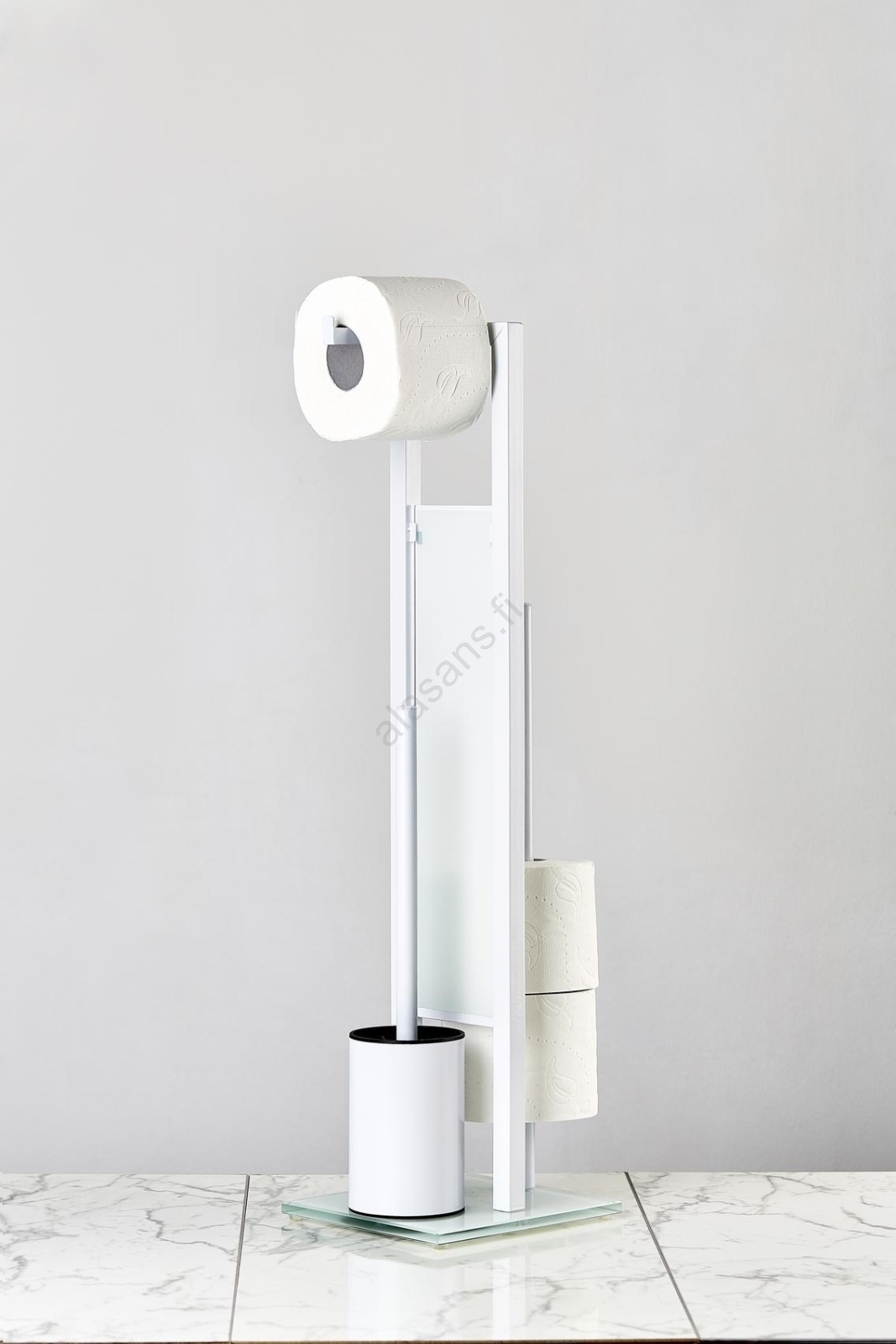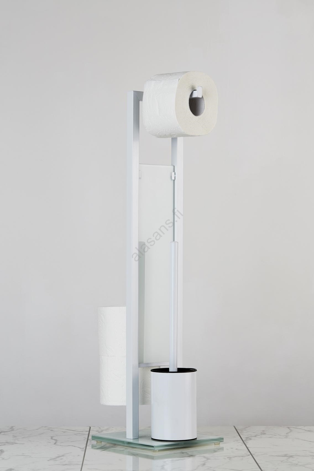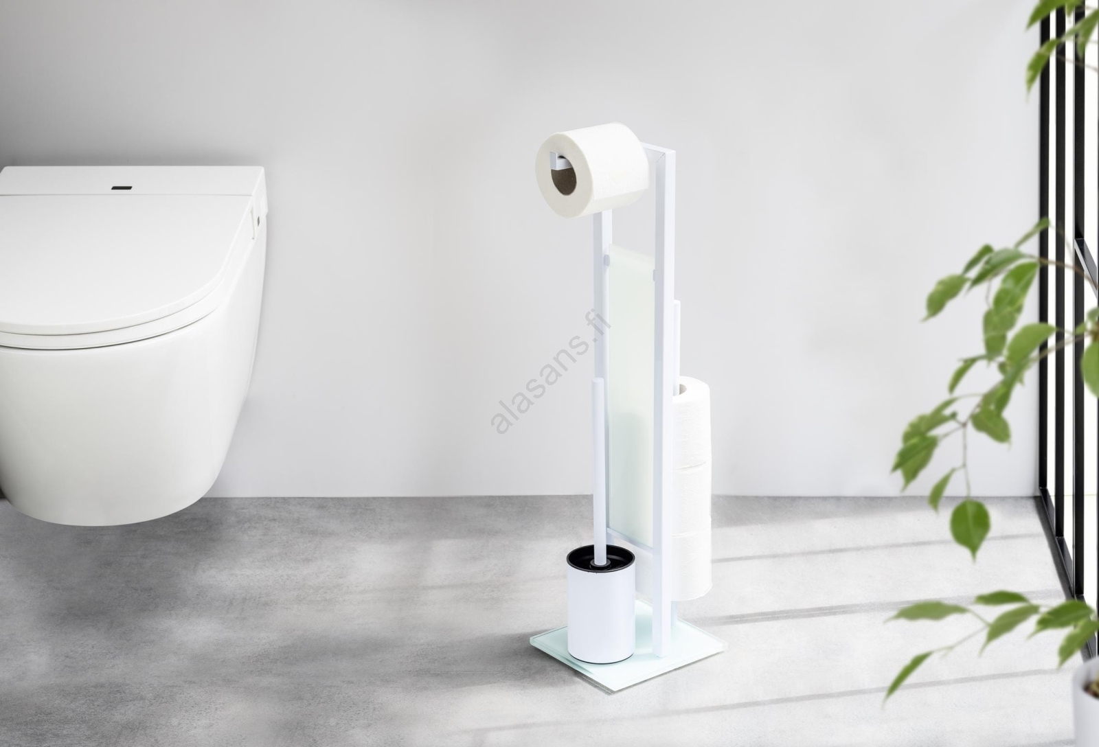 • Käytännöllinen 3-in-1-ratkaisu – wc-harjateline, wc-paperiteline ja vararullatila.