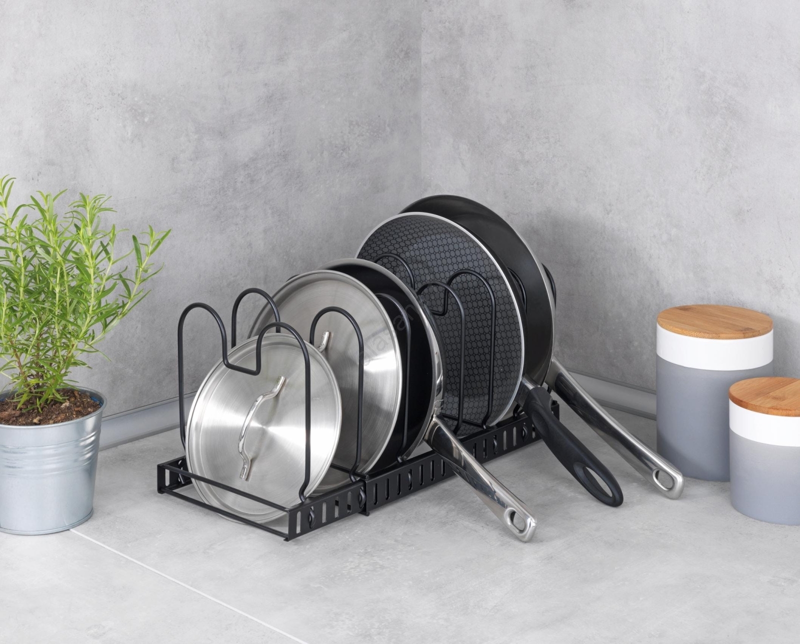 WENKO 53149100 - Kansien ja pannujen säilyteline 18x18 cm, musta | Alasans
