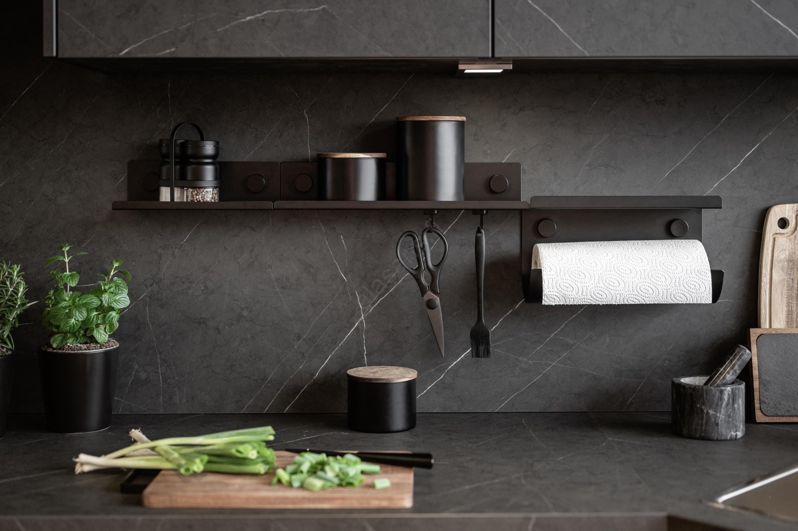 • Tyylikäs keittiöpaperirullateline WENKO Jet -sarjasta modernissa mustassa designissa.