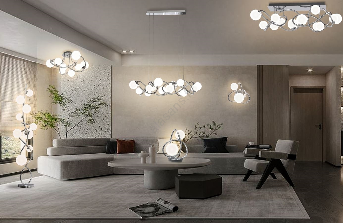 Wofi 9014-807 - Kiinteä LED-kattokruunu NANCY 8xG9/3,5W/230V kiiltävä kromi | Alasans