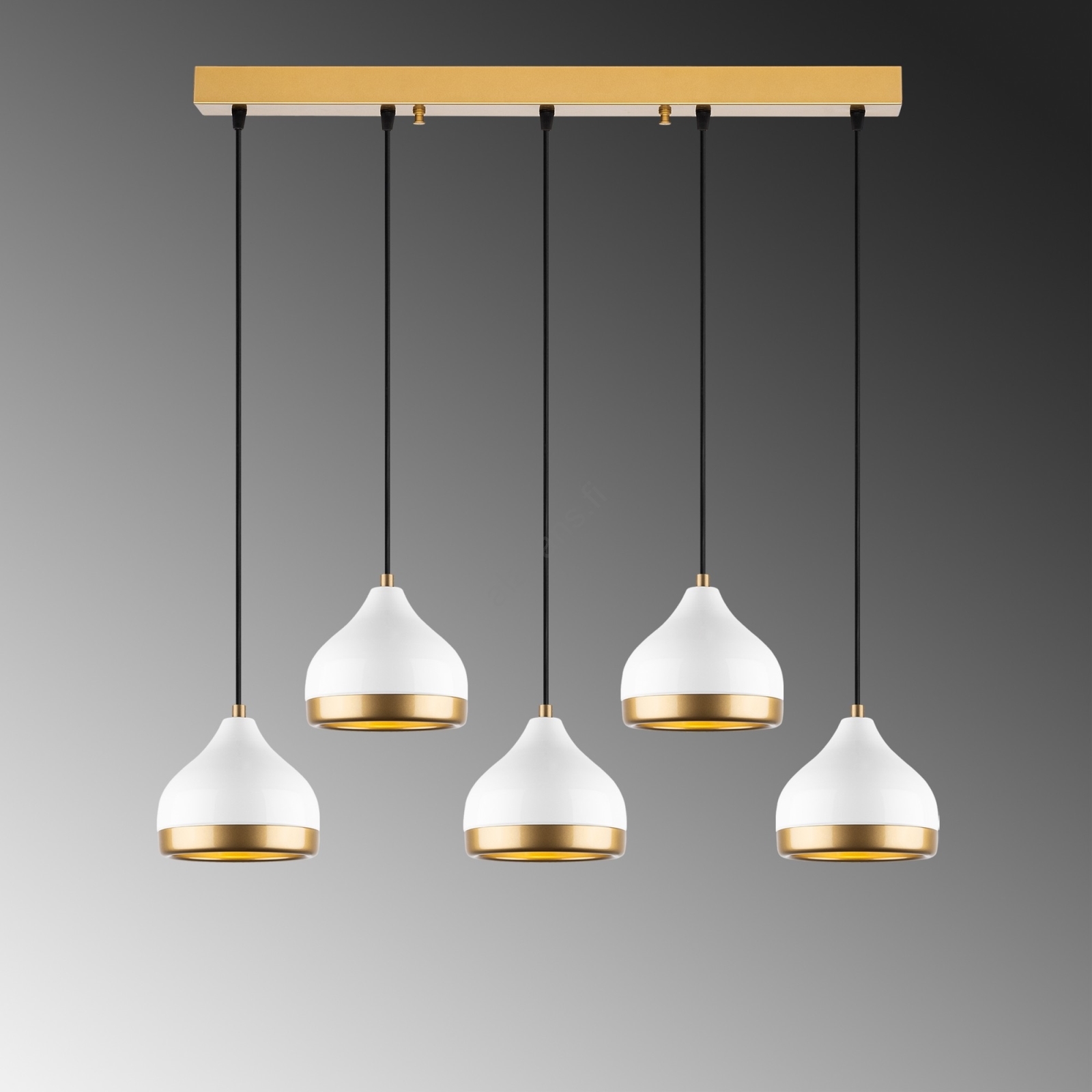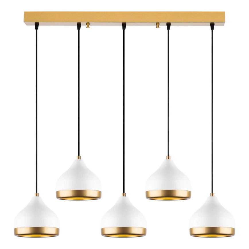 YILDO-riippuvalaisin vaijerilla 5xE27/40W/230V, valkoinen/kultainen