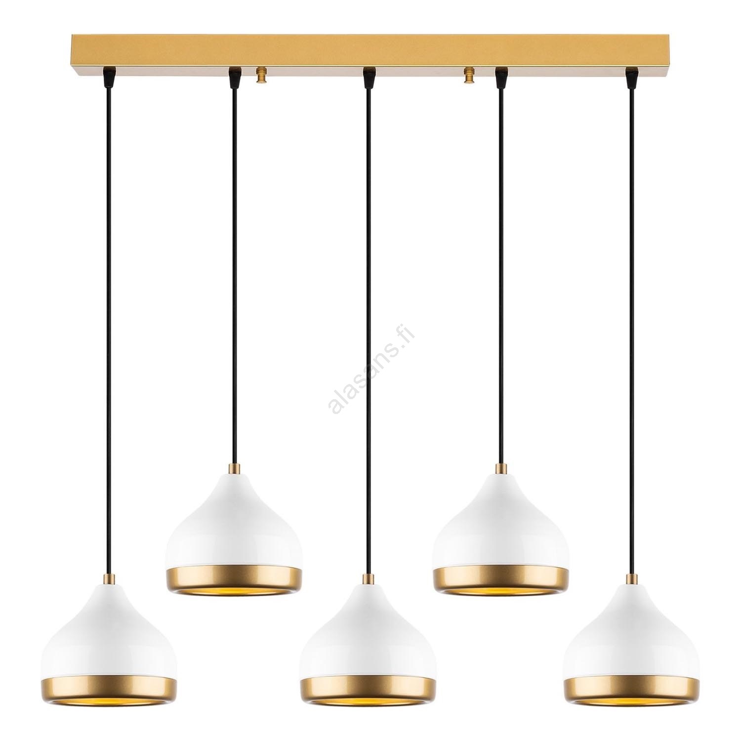 YILDO-riippuvalaisin vaijerilla 5xE27/40W/230V, valkoinen/kultainen | Alasans