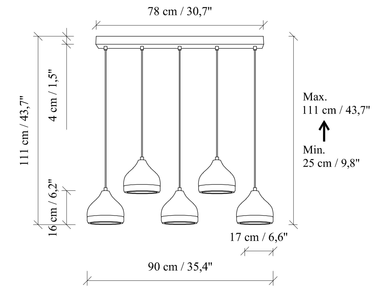 • YILDO-riippuvalaisin vaijerilla 5xE27/40W/230V, valkoinen/kultainen