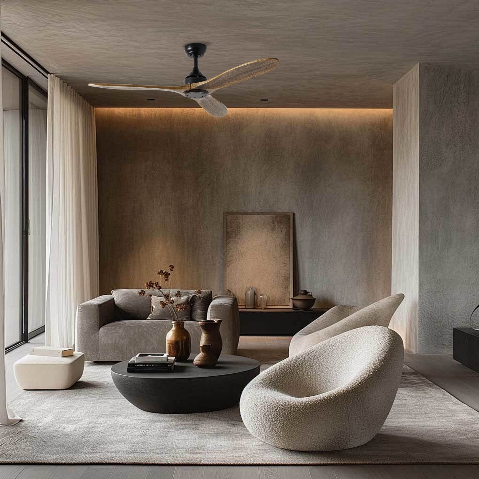 • ZEVENTI - LIONI Wi-Fi Tuya kattotuuletin, musta/tammi + kaukosäädin